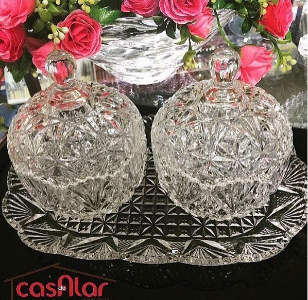 Jogo com duas Bomboniere e Bandeja em vidro
