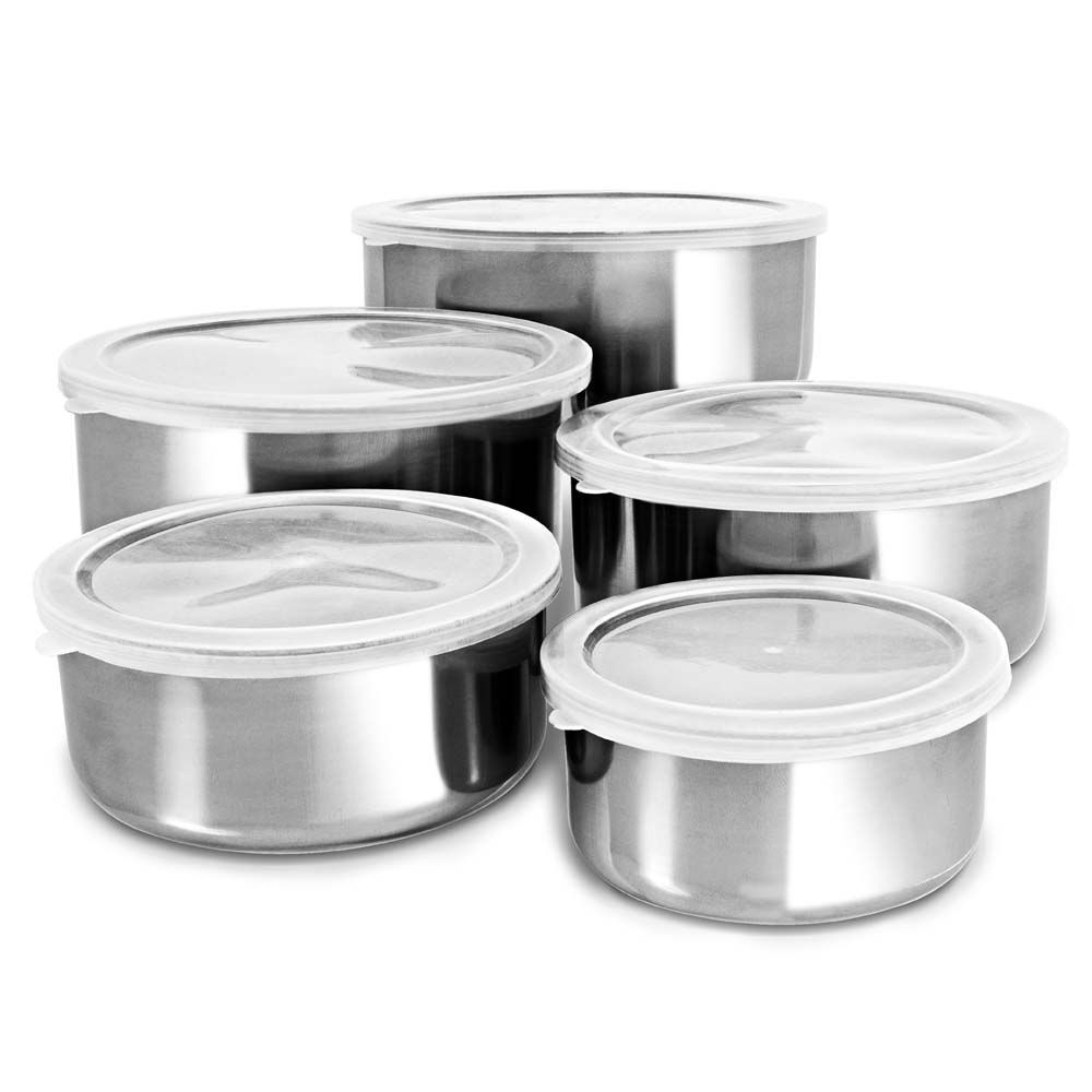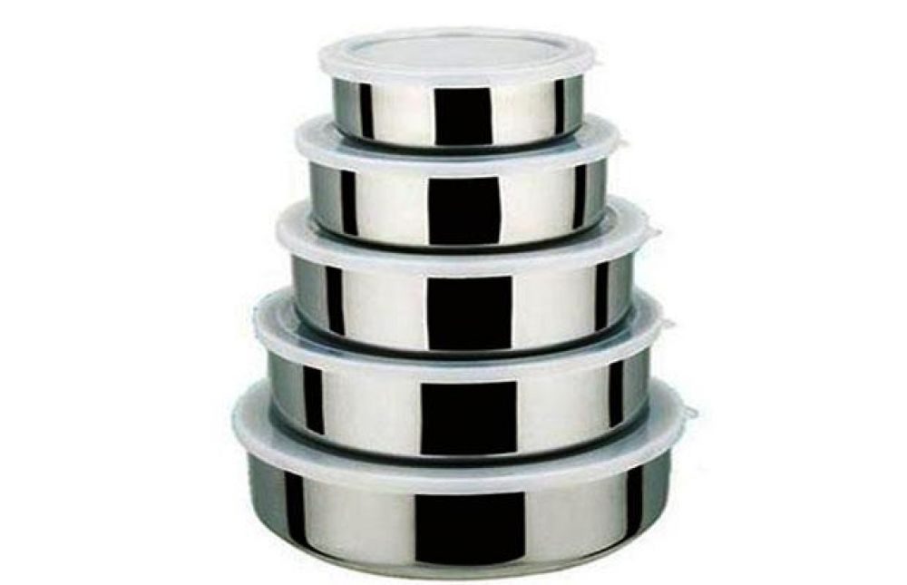 Jogo com 05 Bowls de Inox com tampa de plástico