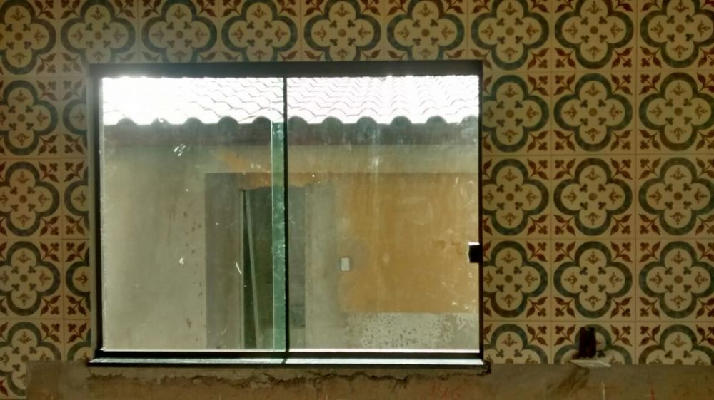 Janela de 2 folhas, sendo uma fixa e uma móvel. Com trava Bate fecha da multmetais, que tem aba para cadeado.